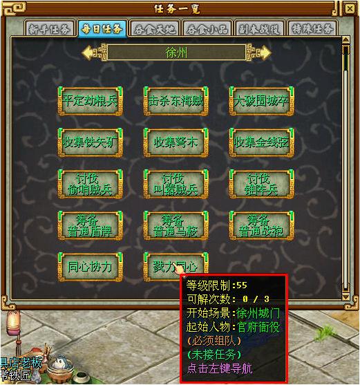 说明:新增徐州55级组队任务【戮力同心】,更多经验更强互动