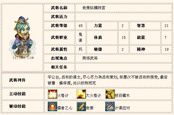 陈宫45级,鬼谋。35级带,40级抓,捕捉地点:徐州郯城树林1