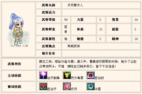 糜夫人50级,医者。40级带,45级抓,捕捉地点:徐州-合肥树林2
